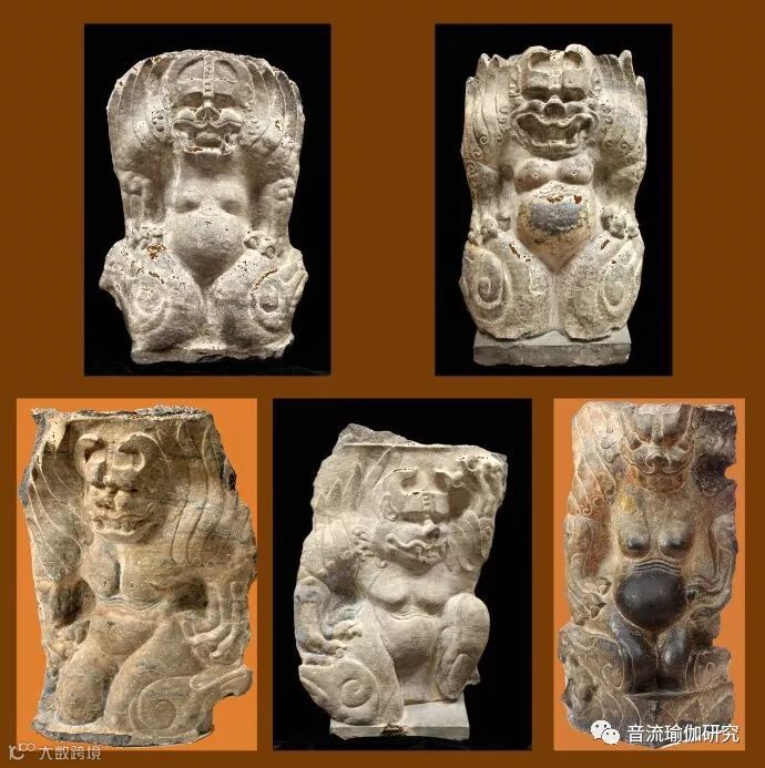 美国馆藏响堂山石窟佛龛守护者:北齐石雕有翼怪兽--畏兽像(五身)