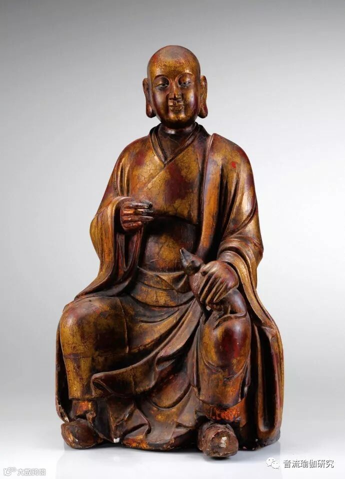 十七世纪清康熙年 木雕加漆:罗汉坐像