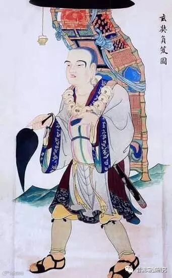 唐朝京大慈恩寺玄奘法师,发誓要去西竺取经回国。在唐太宗贞观三年,自己一人单独往西前进,万般艰难地渡过流沙区,经过高昌国,到了罽宾国,境内有很多虎豹;没办法前进,玄奘大师不知道怎么办,只好闭门静坐,默祷菩萨加被。到了晚上开门时,有一位老和尚进来,奘大师向他礼拜,恭敬对待他,老和尚教他诵持般若心经;于是虎豹藏匿不出,魔鬼遁形不见,得以直达佛国,取经而归。大师经过一百五十多国,贞观十九年冬天才回到京师长安。
