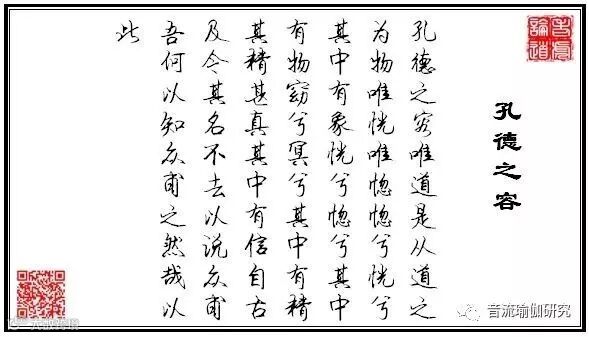孔德之容,惟道是从。道之为物,惟恍惟惚。惚兮恍兮,其中有象;恍兮惚兮,其中有物;窈兮冥兮,其中有精。其精甚真,其中有信。自古及今,其名不去,以阅众甫。吾何以知众甫之状哉?以此。