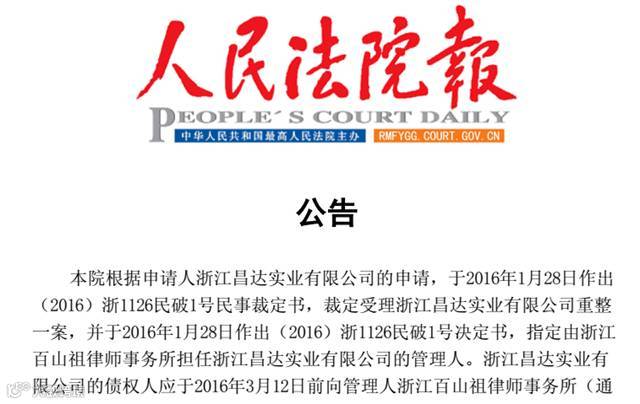 4大银行齐助力,浙江昌达公司139天完成破产重整