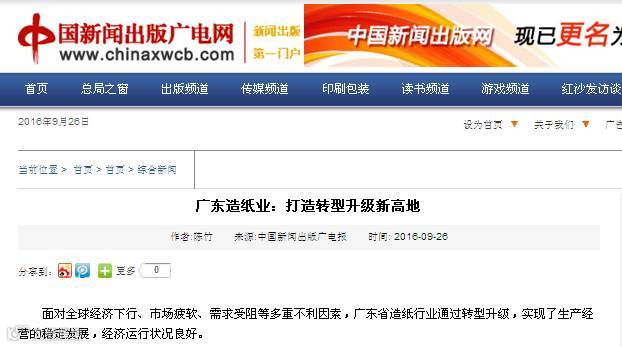 【摘要】广东省造纸行业通过转型升级,打造4个造纸基地——东莞中堂造纸产业基地、位于江门市的广东银州湖纸业基地、湛江林浆纸产业基地、广宁特种纸产业基地,正在建设1个产业转移工业园——珠海(阳江)高新区技术开发区,实现了产品产量持续增长,跃居全国第一。同时,广东省积极响应供给侧结构性改革的相关政策,调整经济结构,超额完成国家节能减排任务。