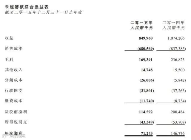 纯利7124万元,长港敦信2015年纯利跌51%