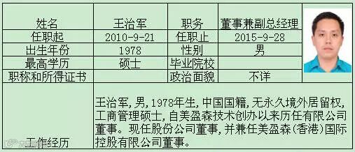 9月29日,深圳市美盈森环保科技股份有限公司(以下简称:美盈森)再度发布公告称,公司董事会于2015年9月28日、公司第三届董事会第十八次(临时)会议后收到公司董事兼副总经理王治军先生的书面辞职报告。