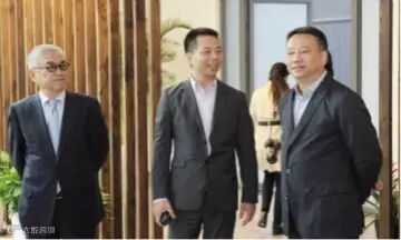 董事长罗喜荣(中)陪同贵宾参观新工厂