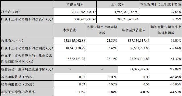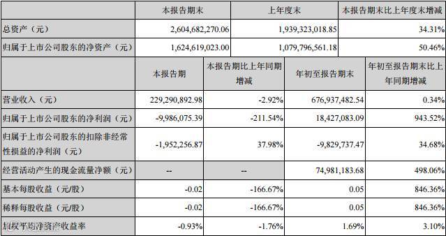 公司前三季度实现营业收入6.77亿元,同比略增0.34%;归属上市公司股东的净利润为1842万元,同比增长943.52%。单三季度公司实现营收2.29 亿元,同比小幅下降2.92%;归属上市公司股东的净利润为-998.61 万元,同比下降211.54%。公司在单三季度的公允价值变动收益以及投资收益共为-1069 万元,是净利润录得负值的主要原因。
