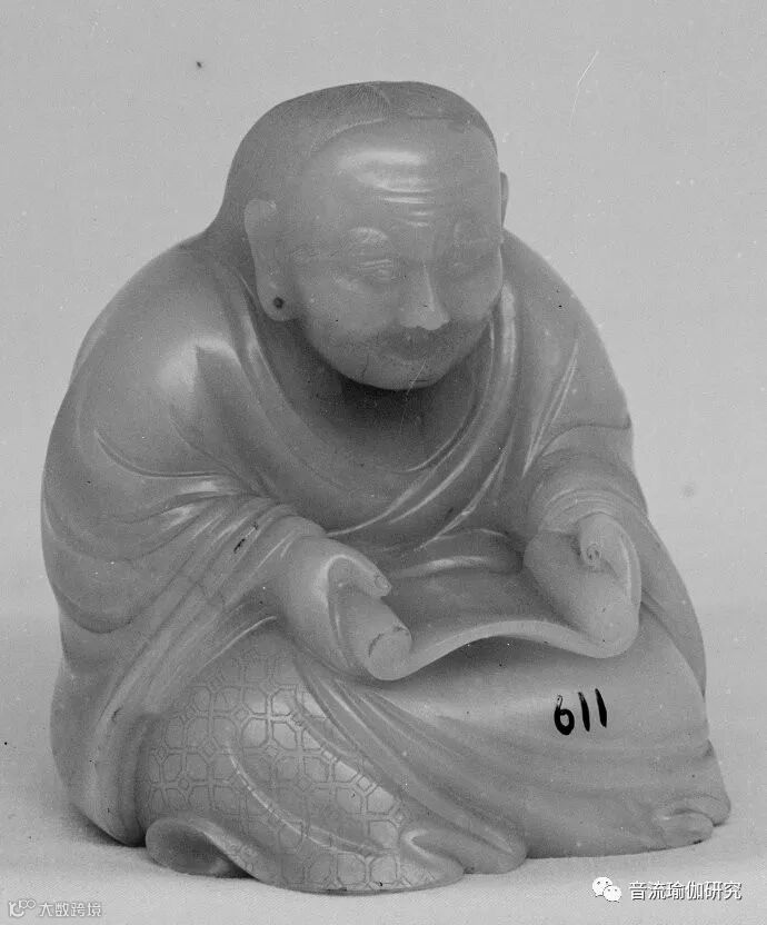 大都会博物馆藏中国佛像:罗汉读经像 十八世纪清代玉雕