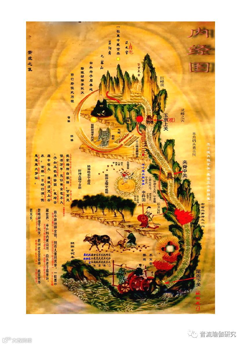 修真图中可以见到环绕着人身,有三十月相。由玉炉之初一 月旦,到尾闾之初三 震,近夹脊之初八 上弦,上至泥丸之十五 望,生门前之廿三 下弦,再回至玉炉前之三十 晦,是为月相之一循还。