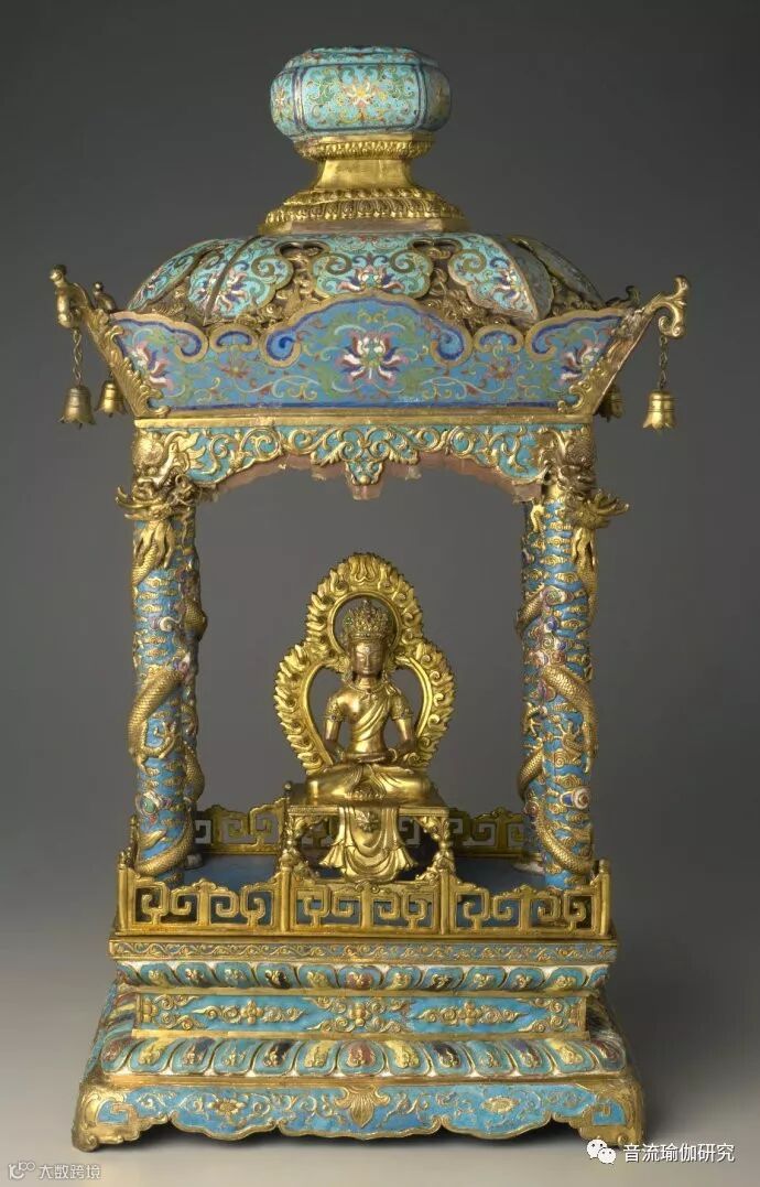 清乾隆年制 景泰蓝铜合金嵌宝石 菩萨龛