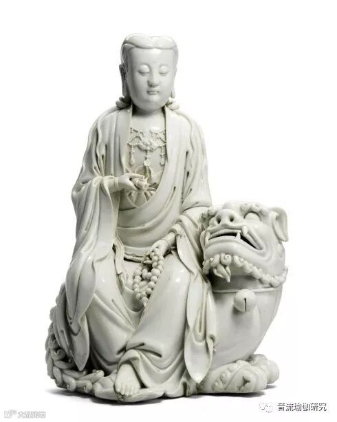 民国「许云麟制」款 德化白釉:文殊骑狮像
