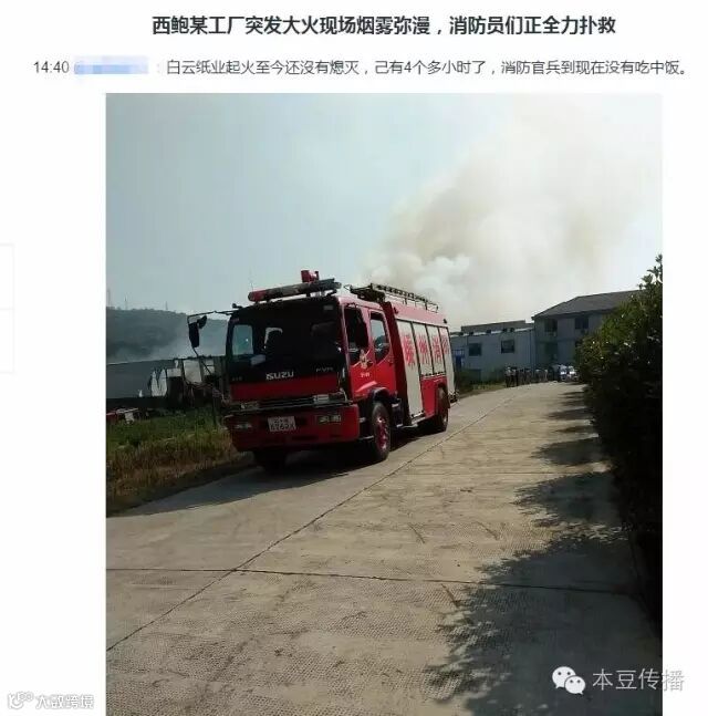 远处看,白云纸业上空浓烟滚滚。