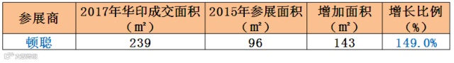 打包机优秀品牌顿聪展出面积239平米,增长143平米,增长149%。