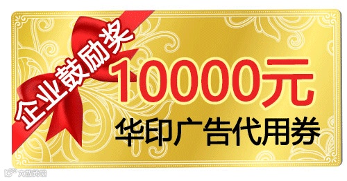 每家奖励华印广告代用券1万元,用于奖励企业综合人气排名前10名企业,该代用券仅用于华印微信和杂志广告。