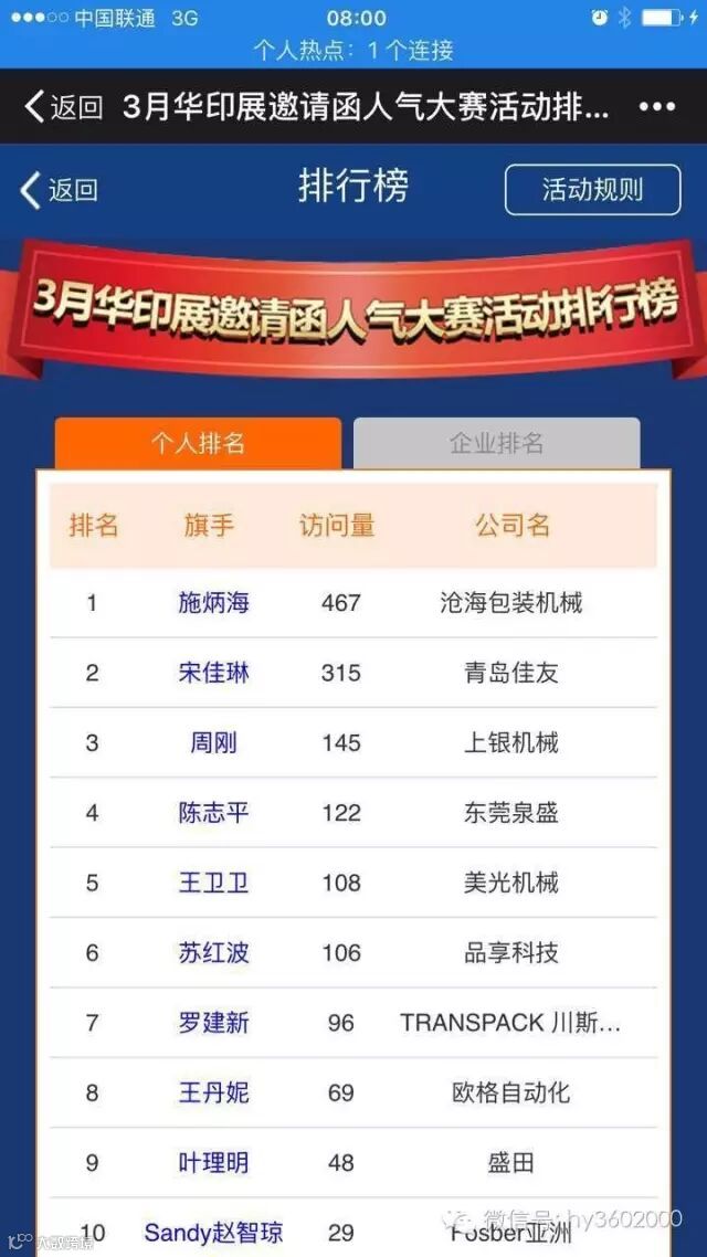 人气排名均按照浏览网页的累计点击数计算,仅限微信中打开有效,同一微信号打开重复浏览最多计算3次。邀请函人气大赛排名均采用计算机自动更新排名!(活动规则的解释权归属上海华印科技有限公司)