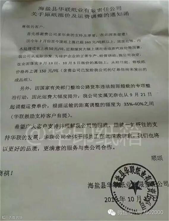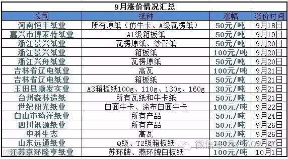 9月份,各纸箱厂至少已经收到了13张涨价函!