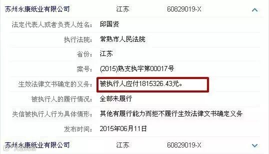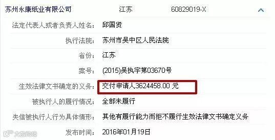 实际上,2016年1月底,苏州永康纸业的地产已在人民法院诉讼资产网上进行拍卖,起拍价超1900万元,至今尚未拿到欠款的债权人注意及时申报。