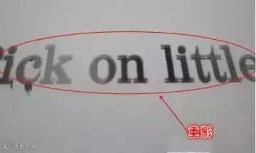 印刷版引起的印刷重影主要是印刷制作过程中印版的边缘没有处理平滑,导致印版向外挤压引起的印刷质量问题,同样也会出现印刷毛刺现象,要彻底解决只能重新制作印刷版。