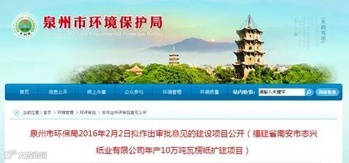 【看点】2016年1月,福建省泉州市环保局通过南安市水头锦兴纸业有限公司年产11万吨挂面纸、瓦楞纸改建项目环评。2月该市环保局通过福建省南安市志兴纸业有限公司年产10万吨瓦楞纸扩建项目环评。