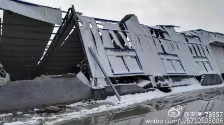 而在这场雪灾中,不但交通堵塞,临沂众多的工业企业也不堪大雪的力量,众多厂房仓库被大雪压塌。一些钢筋结构的大棚被大雪压的整体倒下,连接地面的钢筋也被巨大的力量拔起。