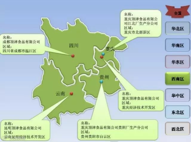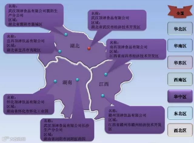 康师傅全国七大区域工厂分布图解