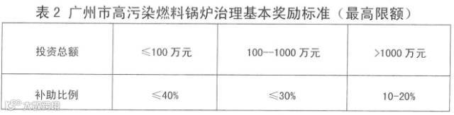 今年9月1日,广州市环保局和广州市财政局联合印发了《广州市整治高污染燃料锅炉资金奖励办法》,奖励资金按不同整治方式、锅炉大小和淘汰的时间等设定标准。具体奖励标准如下: