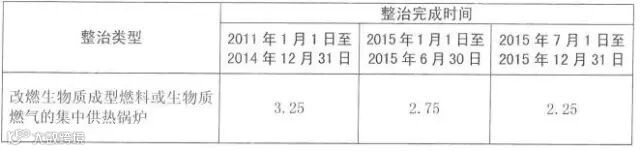 在2014年底前、2015年1月至6月、2015年7月至12月改燃生物质成型燃料或生物质燃气的锅炉,分别按每蒸吨3万元、2.5万元、2万元的额度予以奖励。