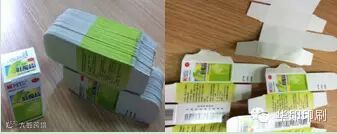 6、收盒时,用手轻压胶水位,然后捆扎装箱,经过4小时后开箱检查糊盒粘连效果,明显粘住,撕开时能见到剥开粘口撕破纸张涂布层和纸纹,如下图。