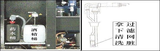 排除方法:清洗酒精吸嘴上过滤网脏东西。