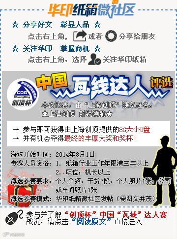【注】华印传媒是中国唯一在纸箱、软包装、印刷行业进行专业资讯服务的权威媒体。华印纸箱[ID:hy3602000]、华印软包装[ID:rb3602000]是华印依据不同印刷形态而设立的更加细化的专业微信号。我们从专业的视角,与您共同寻找印刷圈的价值灵魂,为您打造信息碎片化时代更好的资讯体验。欢迎提供新闻线索,电话: 印刷编辑部——小李,投稿或荐稿请发至邮箱:springli@a1b2b.com