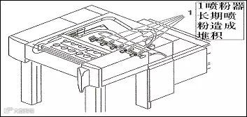 排除方法:清除喷粉和疏通喷粉器使其畅通并加入新喷粉。