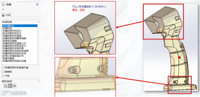 SOLIDWORKS Plastics 2026中同样有不少新功能更新, 比如未填充体积显示功能。短射现象是用户做模流分析时经常需要关注的,在新版本中,当有短射存在时,SOLIDWORKS Plastics可以选择可视化未填充区域,以识别和解决高质量零件的短射问题。