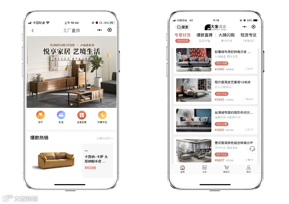 大象对小程序中的下单流程三大模块进行升级优化,包含工厂直供、会员商户自营和居家商城,充分提升用户体验感。