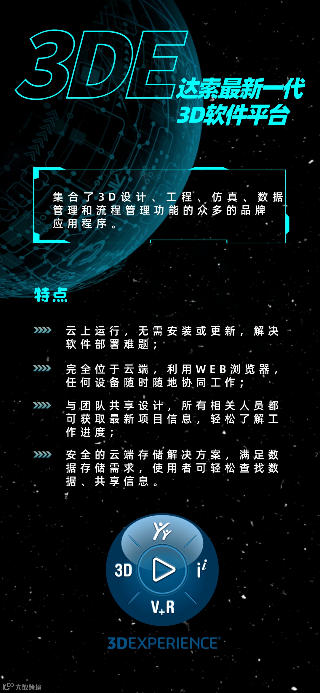 3DEXPERIENCE随时随地设计仿真生产协作;无缝实现从构思到交付,助力3D设计应用不断升级,全面加速创新产品开发过程