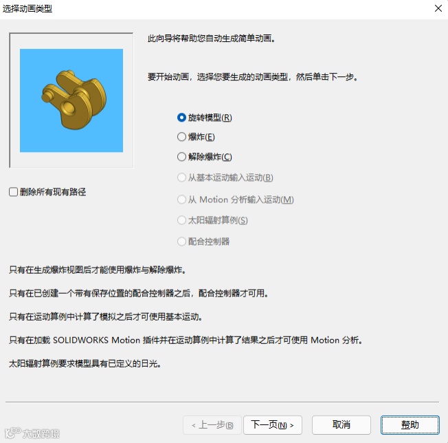 SOLIDWORKS软件提供动画制作功能,还提供向导式操作界面,让没有动画基础的工程师可以轻松制作动画。