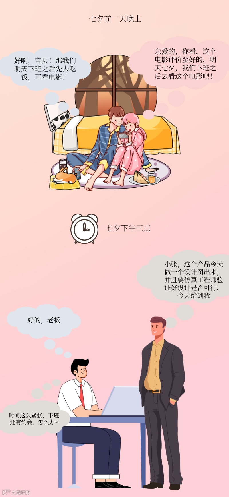 C:女朋友善解人意,她会理解我的,她可以过来陪我一起加班,加班结束之后再出去约会吧