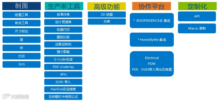 当企业想要从AutoCAD转换到其他2D CAD产品时,无论从易用性、兼容性、性价比,DraftSight都将是您的首选。除了拥有最基础的操作之外,它的功能也非常的齐全,集成度、协作平台、定制化、企业服务等等也较为广泛。
