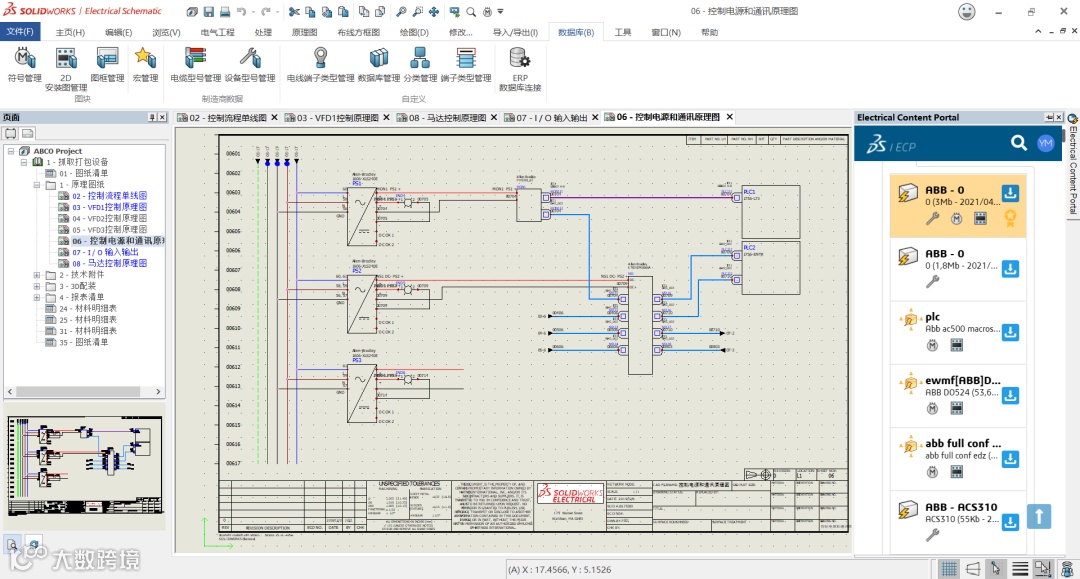 SOLIDWORKS Electrical在为电气工程师提供高效电气绘图解决方案的同时,搭建了多用户协同设计平台,使机械设计和电气设计得以在同一平台内进行。电气工程师在二维图纸中的电气设计,可以在机械工程师的三维空间结构中进行模拟布局,自动布线,计算线长,真正实现机电一体协同设计。