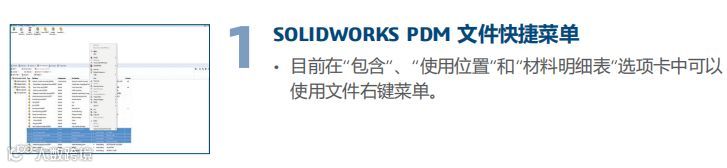 优点:使公司可以将文件数据存储于由一个组控制的SOLIDWORKS PDM 或其他文档对象中,并允许无权修改文档数据的其他组使用。