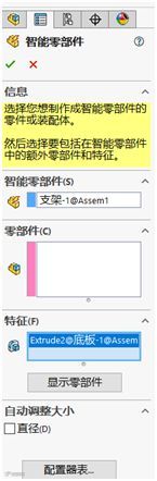 1、选中零部件,然后单击制作智能零部件 (装配体工具栏)