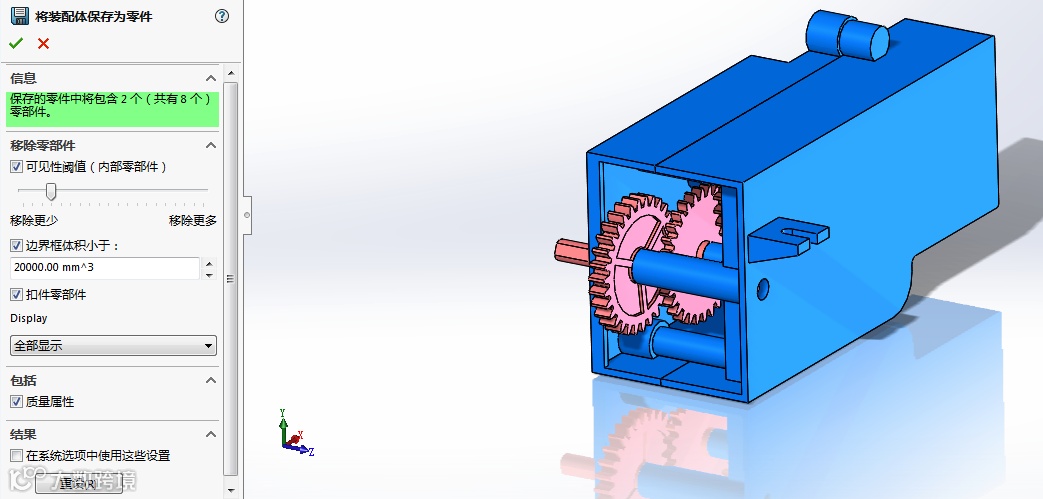 针对SOLIDWORKS装配体文件,除上述格式外,更推荐保存为SOLIDWORKS零件文件,转存时可以控制生成到零件文件的内容,比如只生成“外表面”,选择需要的对象生成零件等等。