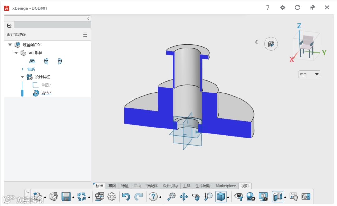 3、 建立的基本思路还是一样的,通过草图、特征等来完成。我们建立一个过盈配合的模型,用于仿真分析。