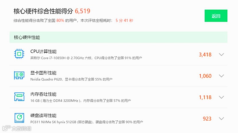 2.1 使用鲁大师硬件跑分结果