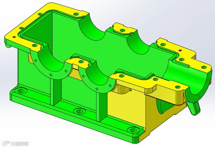 通常情况下的设计要求,需要保证制造效率,针对当前模型则可以重点考虑对独特面(红色)的修改。详细操作过程请查看以下视频