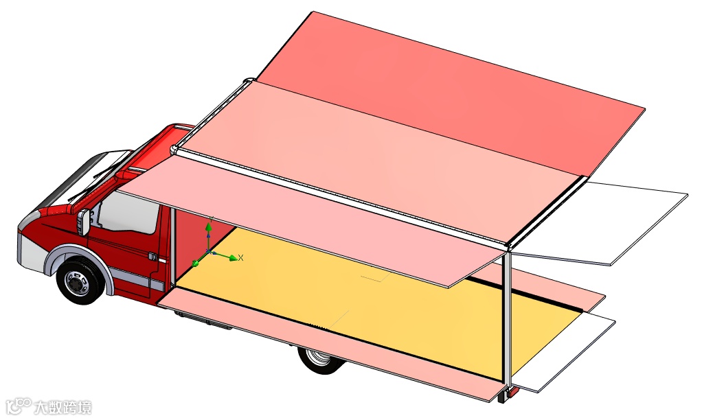 在摆摊时,一般侧壁支起的角度会略微向上,如下尾部视图: