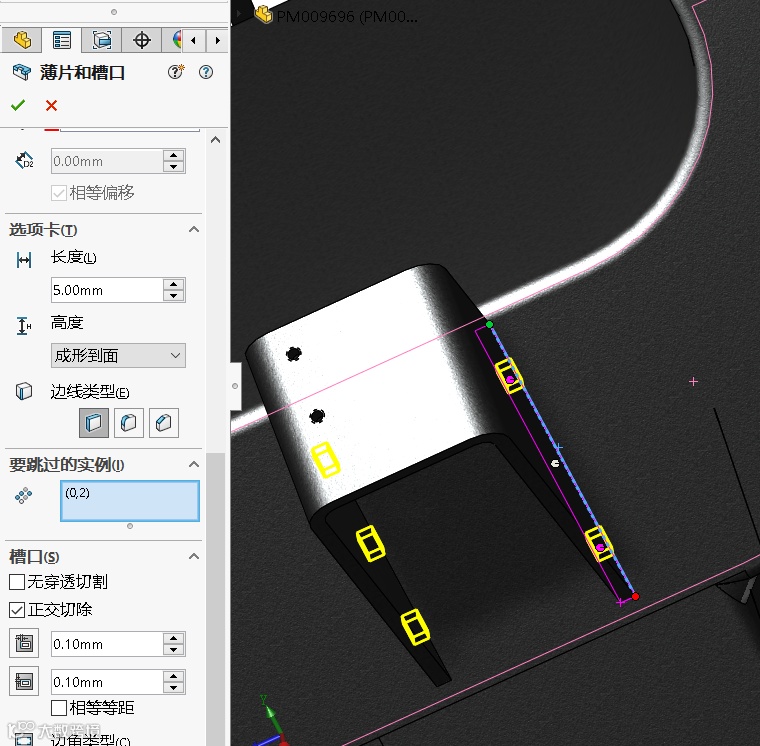 薄片和槽口功能增强,可通过“相等偏移”选项,轻松调整槽口与所选边缘之间的距离,确保设计的对齐和美观,跳过实例的功能,让复杂设计更加简便。