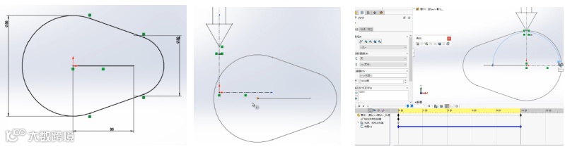 采用类似于结构简图的方式简单明了,符合工程师的设计思路,同时配合软件的动画功能保证了动作校验。例如凸轮运动属于较为常见的机构运动,通过对此的演示可以举一反三应用到其它的机构模拟中去。