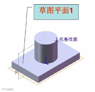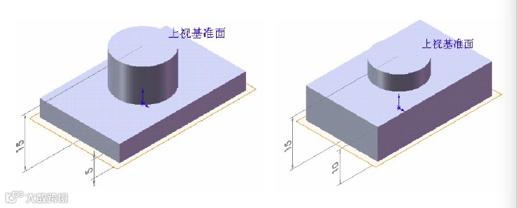选择上视基准面时,当底板的厚度变化时,圆柱的高度和相对位置不发生变化,零件的总高也不发生变化。
