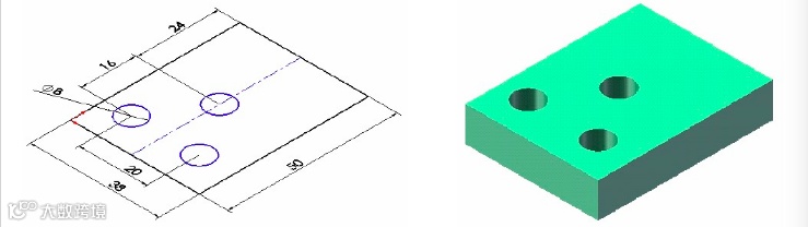 两个圆在竖直方向上位于机体特征尺寸30的中点,应绘制水平中心线,并使中心线位于30的中点。
