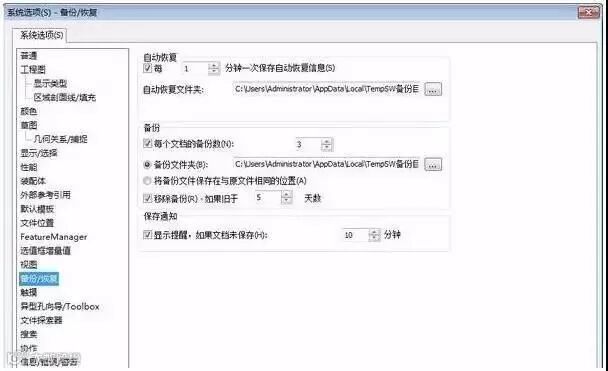 突然断电,程序崩溃,你需要自动恢复文件来救你一命。多次设计后,已经保存了,但是发现以前某一个版本的设计比较好。你需要备份文件来实现“回滚”的功能。当然,只能回滚最近几次保存的结果,具体能回滚几次,要视“每个文档的备份数”设置而定。
