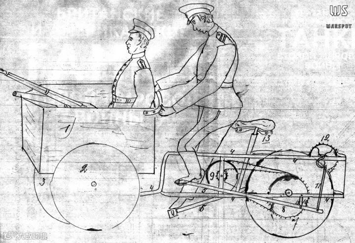 1940年12月有人提交的一个“装甲摩托车”设计方案,在摩托车上装一个活动的弧形装甲盖。